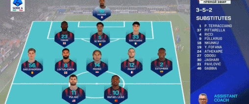 北京时间2月23日意大利足球甲级联赛第26轮,AC米兰主场迎来帕尔马的挑战。上半场普利希奇造险,洛夫图斯-奇克伤退。场上比分暂时定格为AC米兰0-0帕尔马。