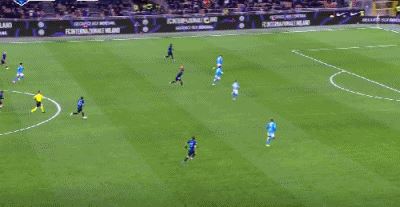 第9分钟,图拉姆助攻,迪马尔科小角度抽射远角破门,国米1-0那不勒斯