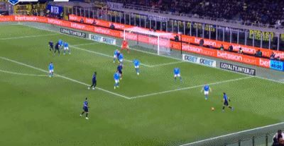 第42分钟,迪马尔科左路传中,泽林斯基抽射打在队友劳塔罗身上