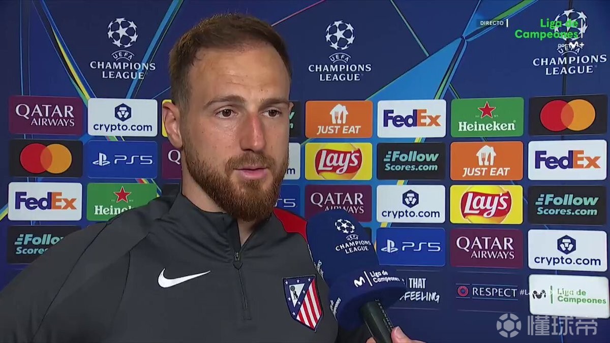 欧冠附加赛次回合,马竞在主场4-1击败布鲁日,以总比分7-4晋级16强。赛后,门将奥布拉克代表球队接受了Movistar+的采访,此役他不仅助攻瑟洛特打进第一球,还在半场结束前扑出了布鲁日的绝佳机会。