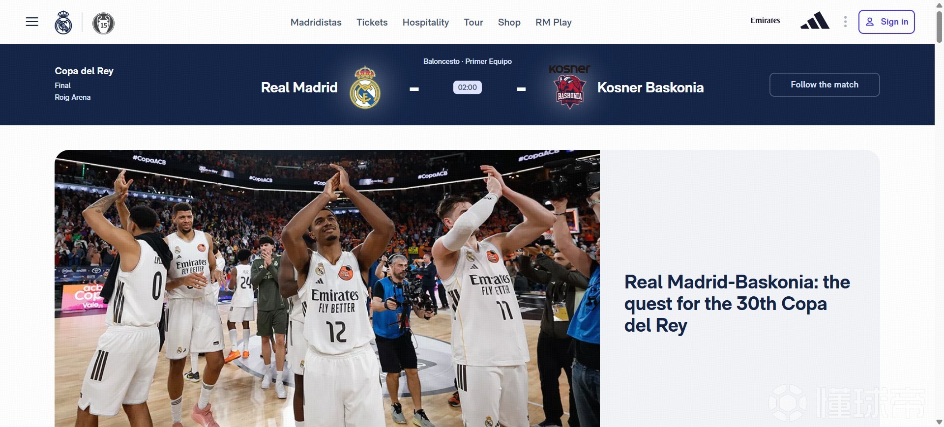 皇马官网同样没有就此事进行更新,最新一条资讯是关于皇马篮球队参加国王杯决赛的内容。