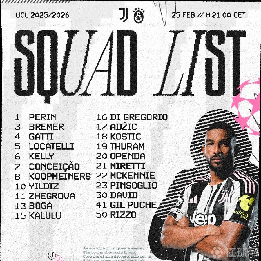 欧冠淘汰赛附加赛次回合,尤文将在主场迎战加拉塔萨雷,赛前,尤文官方公布了本场比赛大名单,布雷默回归。