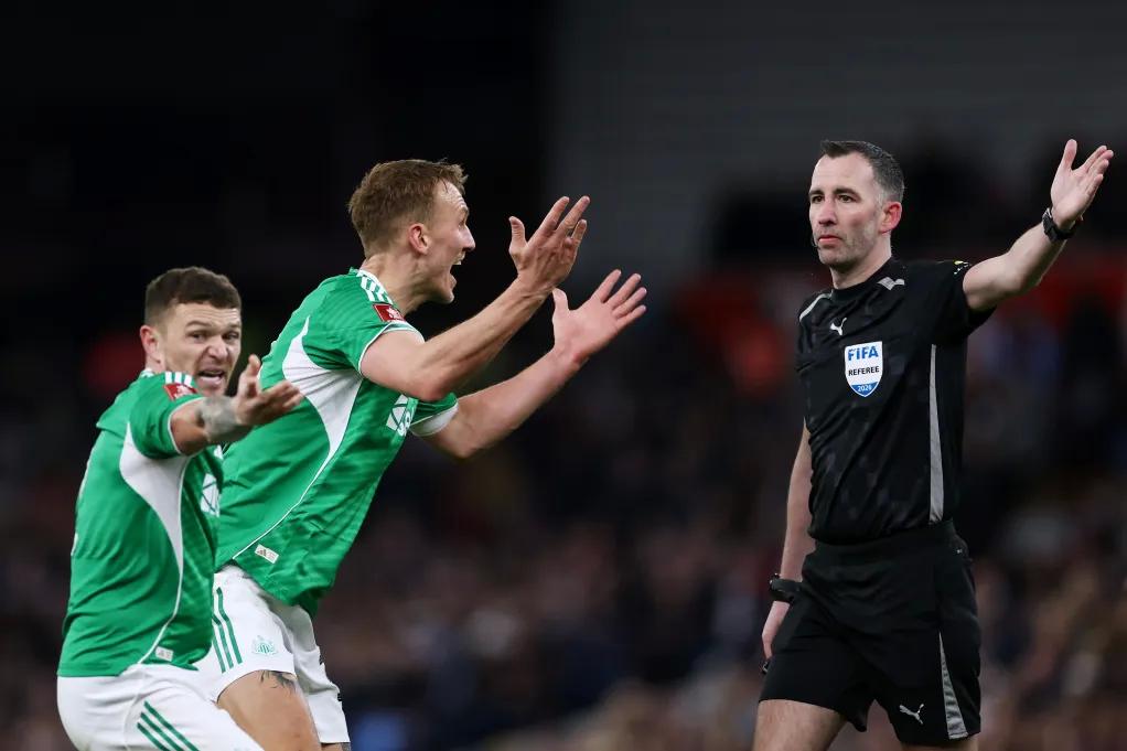 纽卡斯尔主帅埃迪-豪在谈及克里斯-卡瓦纳在那场足总杯比赛中的执法表现时,依然难掩不满:“整场比赛下来,感觉每一个判罚都在针对我们。比赛节奏很快,我相信裁判和官员们的判罚出发点是诚实的,但他们确实多次对我们做出了错误的判罚。我们的球员很好地控制住了自己的情绪。”