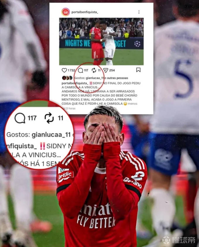 比赛结束后,本菲卡后卫洛佩斯-卡布拉尔赛后向维尼修斯索要球衣,有球迷博主在社交媒体上发表动态,批评了卡布拉尔的举动:“在比赛结束时,卡布拉尔居然向维尼修斯要球衣……我们整整一周以来因为那个撒谎的爱哭鬼被全世界批评,而比赛一结束,他做的第一件事竟然是向他要球衣?”