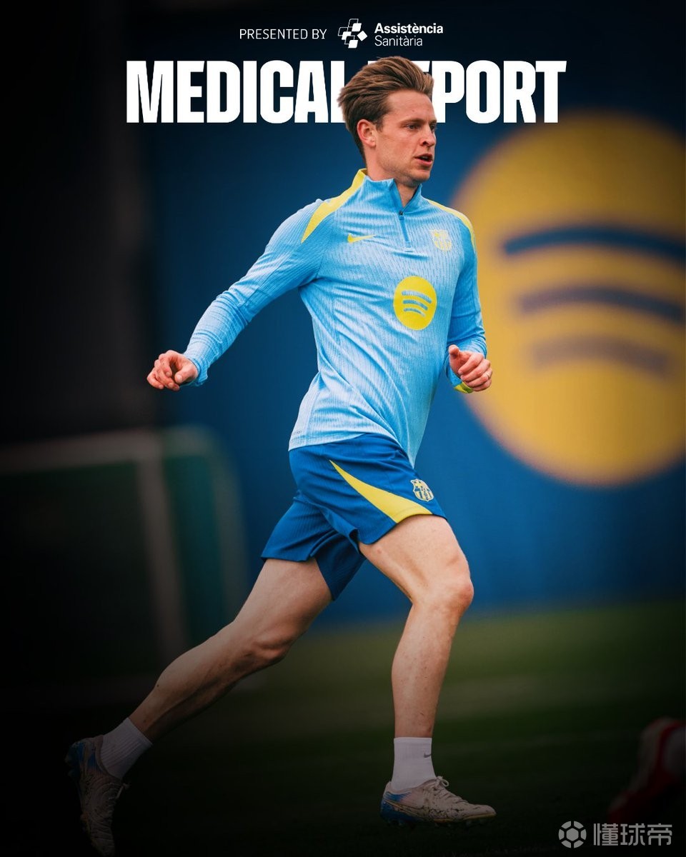 官方消息,巴萨中场弗朗基-德容右腿股二头肌受伤,预计缺阵5-6周。