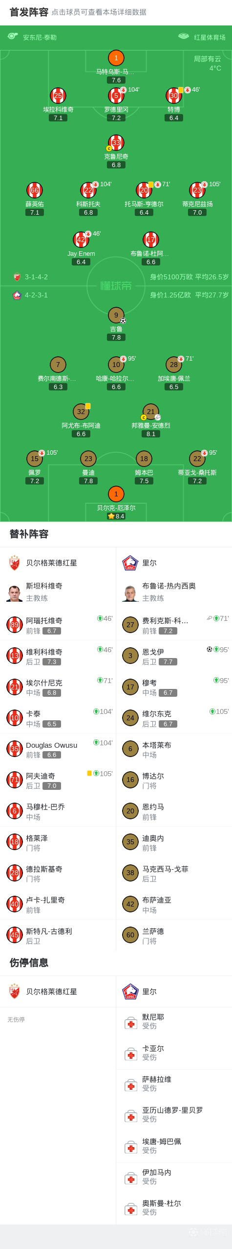 第99分钟,科雷亚助攻,恩戈伊破门,红星0-2里尔
