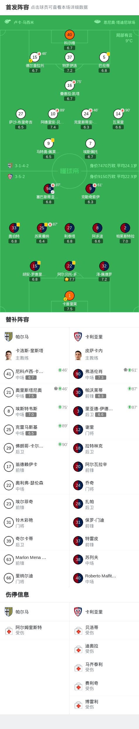 北京时间2月28日意大利足球顶级联赛第27轮,帕尔马主场对阵卡利亚里。比赛中,卡利亚里球员弗洛伦肖接队友传球率先破门,随后帕尔马球员奥里斯塔尼奥打入一球,最终两队战成1-1平。