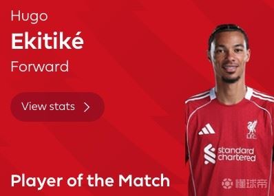 英超第28轮,利物浦主场5-2击败西汉姆联,此役贡献一球两助的利物浦前锋埃基蒂克当选全场最佳球员。