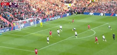 第43分钟,利物浦右侧角球机会,球罚向禁区,埃基蒂克接范戴克头球摆渡,后点做球给麦卡利斯特,后者抽射破门,利物浦3-0西汉姆联。