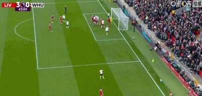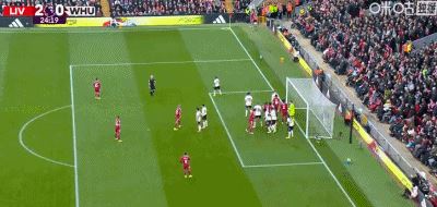 第24分钟,利物浦右侧角球机会,索博斯洛伊将球罚向门前,小禁区内范戴克高高跃起头球攻门得手,VAR介入,确认进球有效,利物浦2-0西汉姆联。