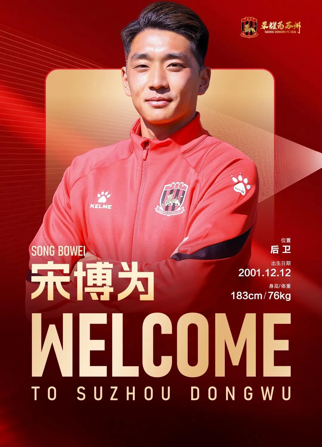 北京时间2月28日,苏州东吴官方宣布,赵申澳、陈荣、宋博为、王玉龙、宋攀、龚芸扬、米尔扎提加盟俱乐部。