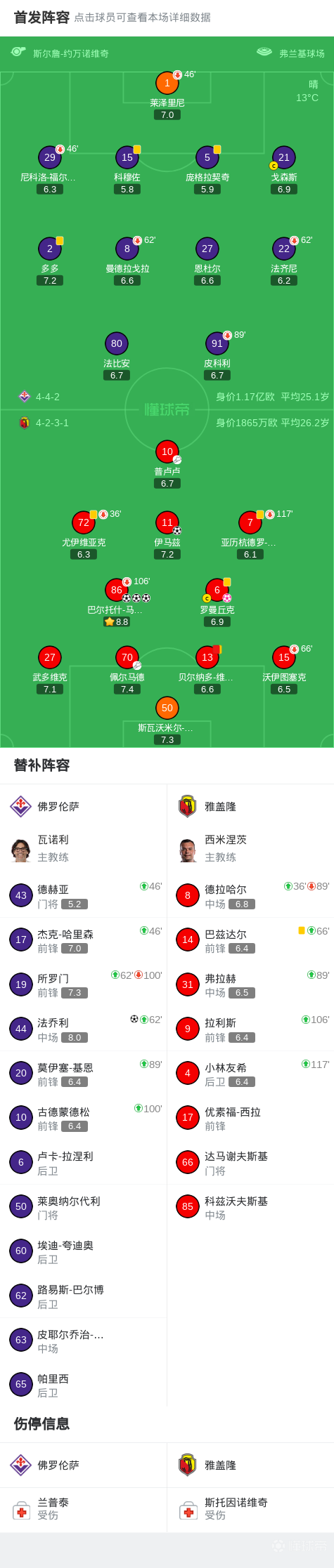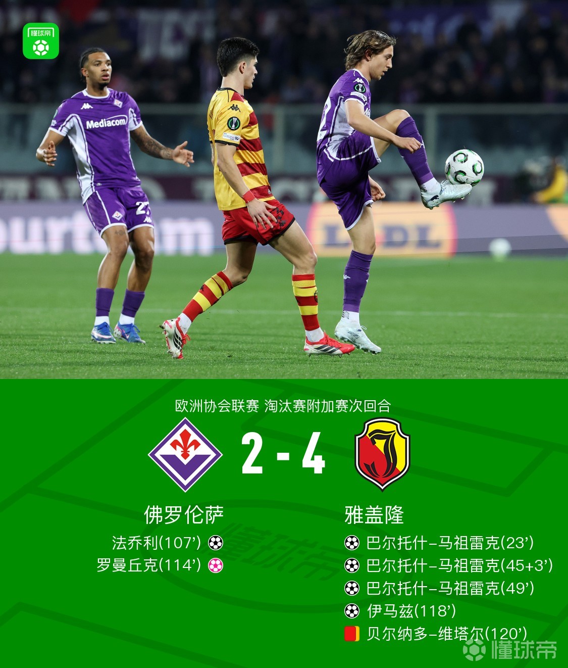 第118分钟,伊马兹远射破门,帮助雅盖隆扳回一球,佛罗伦萨2-4雅盖隆
