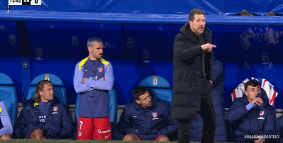 第14分钟,心情不错,格列兹曼替补席谈笑风生