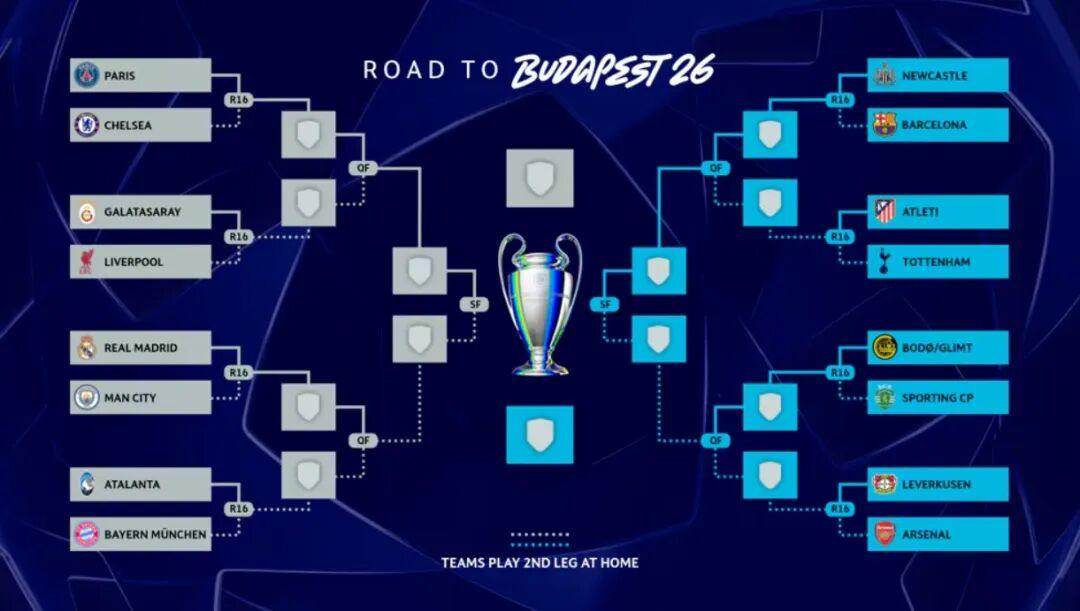 欧冠1/8决赛其他对阵,西甲双雄巴萨和马竞分别对阵英超双雄纽卡和热刺,连同皇马对曼城,3场比赛是英超和西甲两大联赛的全面对抗;意甲独苗亚特兰大遭遇拜仁恐怕凶多吉少,利物浦对阵加拉塔萨雷,有机会在1/4决赛和切尔西上演英超内战;此外,葡萄牙体育和博德闪耀的对决,则是“黑马大战”,将保送一队进入8强。至于能否继续,就看他们与阿森纳对阵时的运气了。