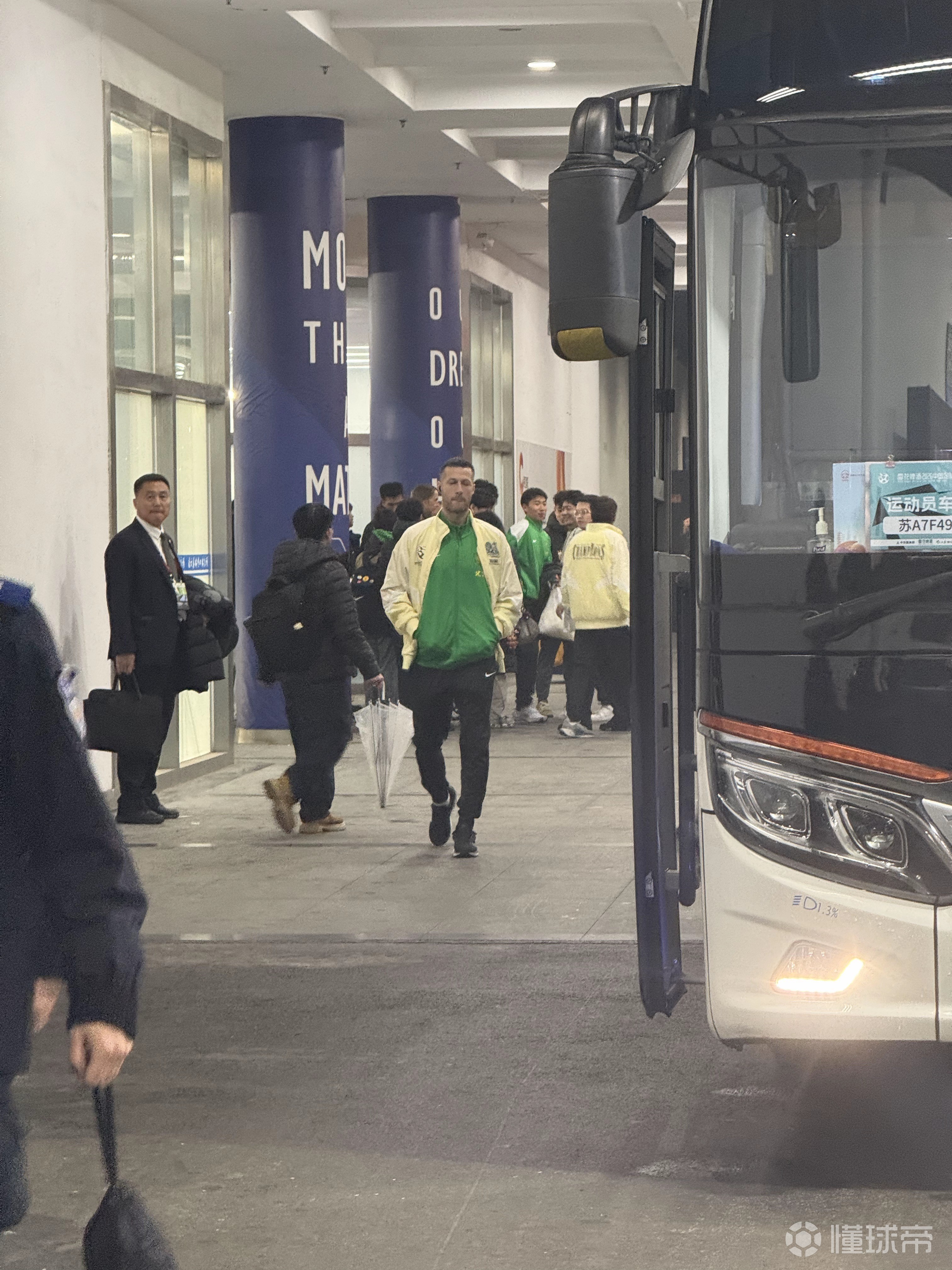 根据现场照片显示,国安队内的第六外援斯帕伊奇也跟随球队来到了南京。