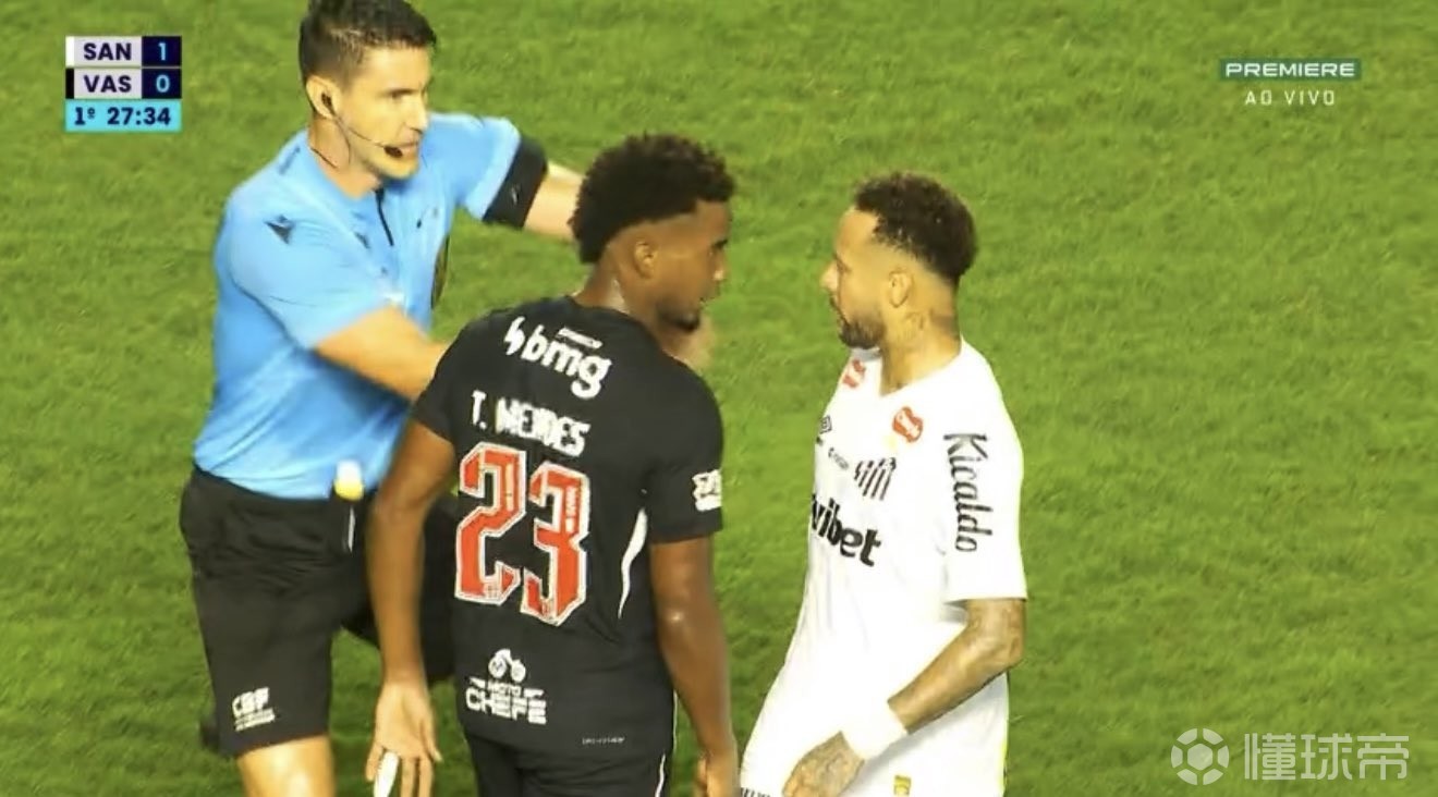 巴甲第四轮,桑托斯主场对阵瓦斯科达伽马,最终桑托斯凭借着内马尔的梅开二度2-1赢下比赛。这场比赛半场期间,内马尔接受场边采访并谈到了瓦斯科达伽马球员蒂亚戈-门德斯。