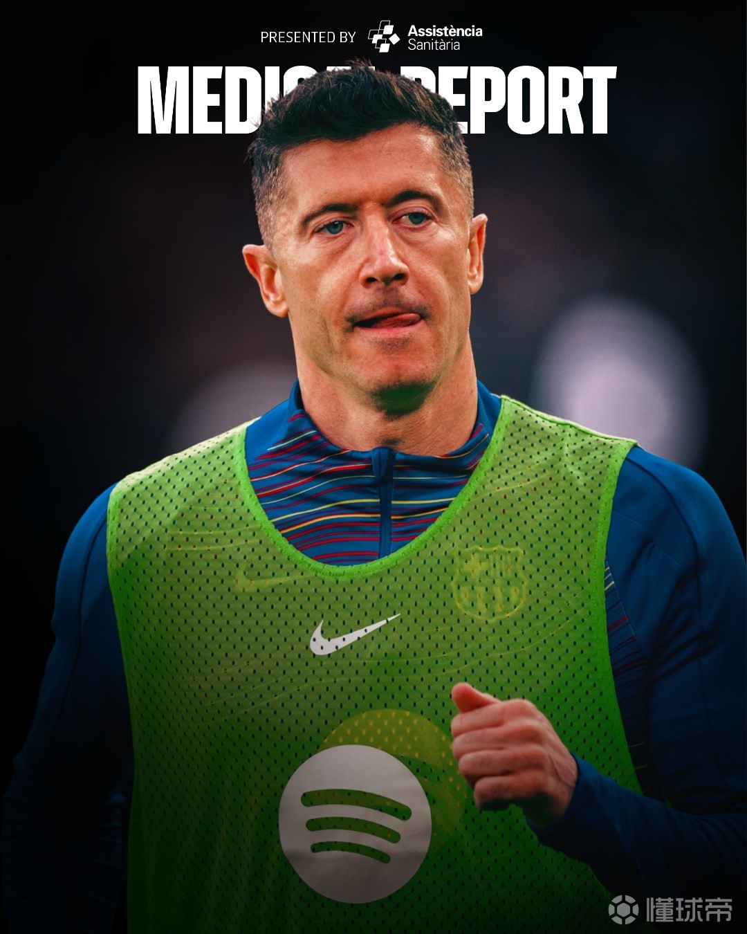 北京时间3月1日,巴萨官方发布公告,表示莱万在对阵比利亚雷亚尔的比赛中遭遇左眼眶骨折,将会伤缺与马竞的国王杯半决赛次回合。