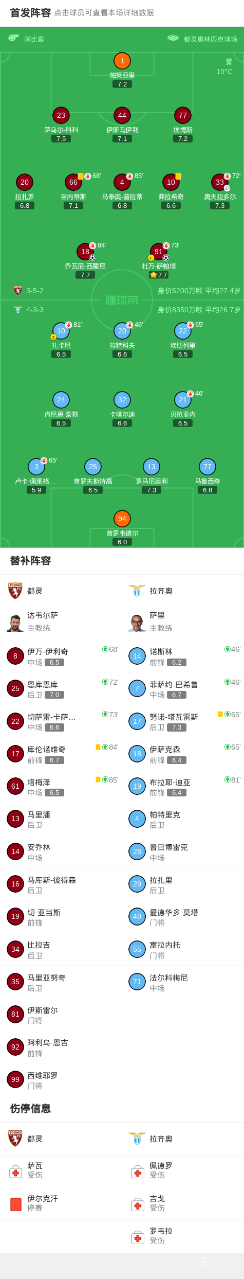 第53分钟,都灵左路起球,萨帕塔头槌破门,都灵2-0拉齐奥