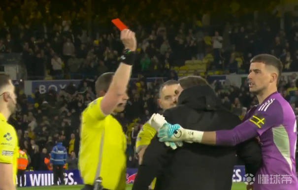 这位德国教头对判罚感到震惊,镜头捕捉到他询问班克斯被罚下原因的画面。