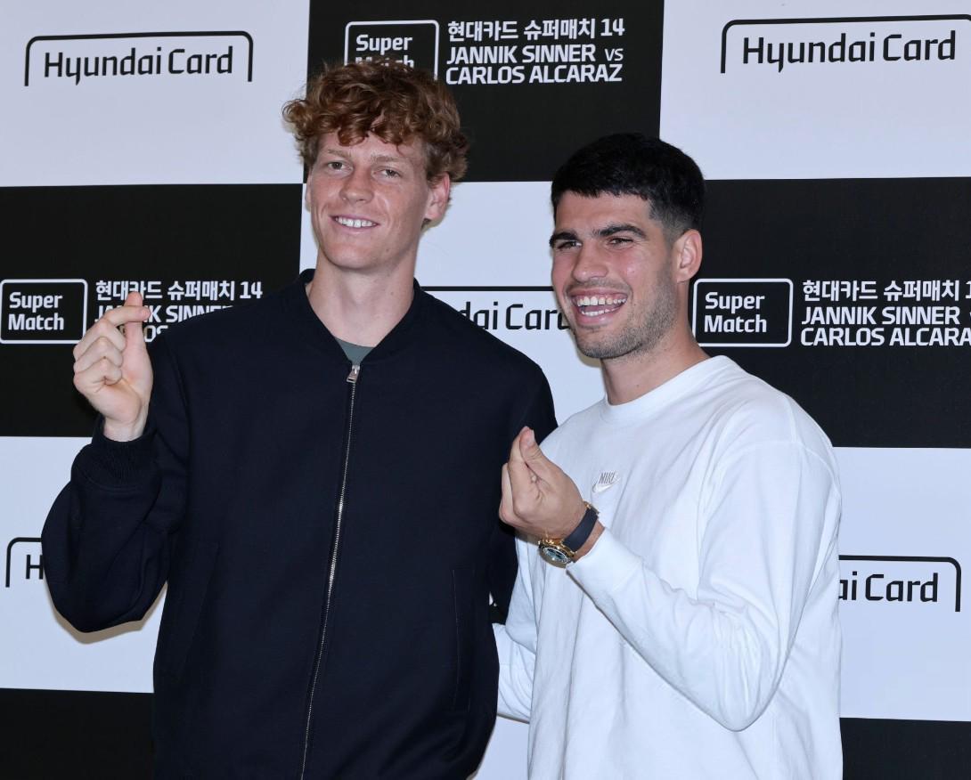 北京时间1月10日,男子网坛双子星辛纳与阿尔卡拉斯在韩国仁川进行了一场表演赛,最终阿尔卡拉斯7-5、7-6(6)击败辛纳。