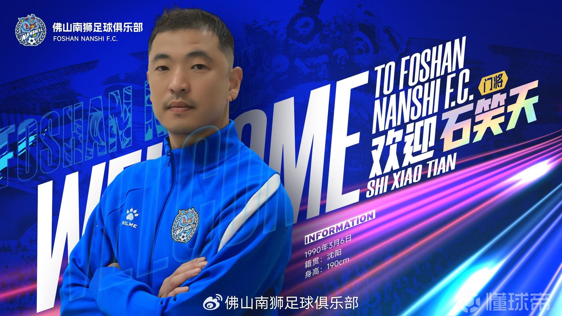 经与球员本人友好协商并达成一致,即日起,经验丰富的守护者石笑天正式加盟佛山南狮足球俱乐部,2026赛季,他将身披南狮战袍,为城市而战,镇守球队的最后一道防线。
