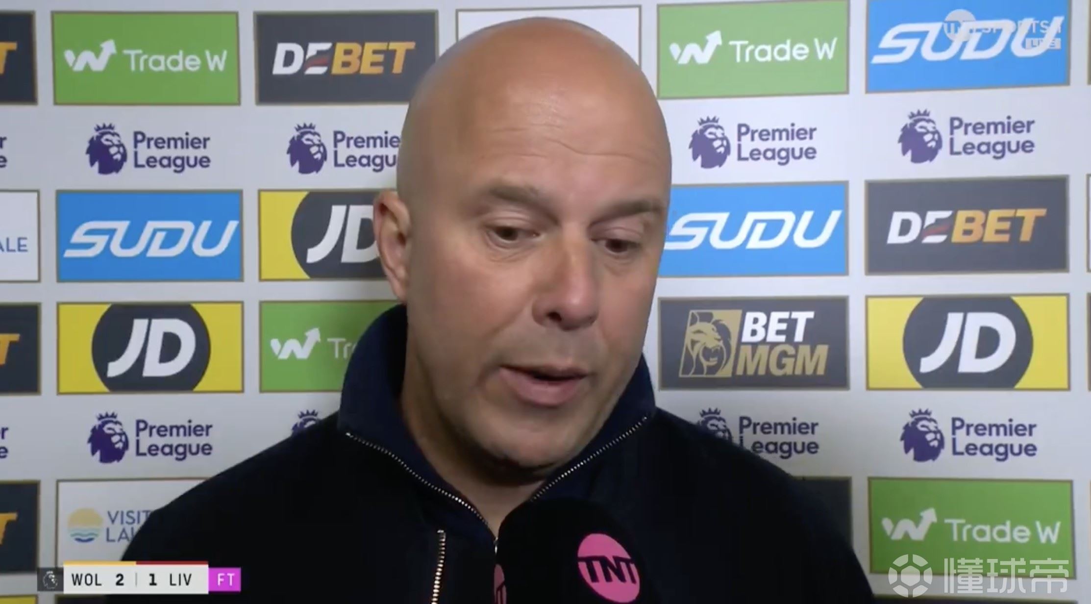 英超第29轮,利物浦客场1-2不敌狼队,赛后,红军主帅斯洛特接受了TNT体育的采访。