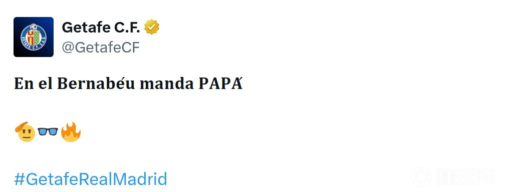 其中最为激进的一条是,赫塔费官媒写道:“伯纳乌,是爸爸说了算。(