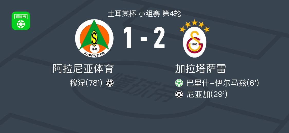 北京时间3月4日土耳其杯 小组赛 第4轮,阿拉尼亚体育对阵加拉塔萨雷。阿拉尼亚体育穆涅破门。加拉塔萨雷巴里什-伊尔马兹破门,尼亚加破门。最终比分阿拉尼亚体育 1-2 加拉塔萨雷。