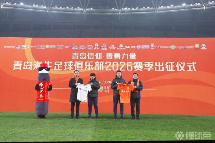“3月4日,青岛海牛足球俱乐部2026赛季出征仪式在城阳区青春足球场圆满举行。2026赛季,青岛海牛足球俱乐部将携手青岛本土品牌青岛啤酒、青岛饮料集团、青岛银行、青岛农商银行一同为这座城市的荣誉而战,出征仪式中,俱乐部与该4大品牌进行了签约仪式,携手向前。活动期间,新赛季球衣由部分球员展示,胸前广告‘崂山可乐’首次亮相。”