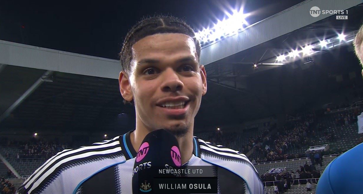十人纽卡斯尔联在英超第29轮主场2-1击败了曼联。赛后,绝杀功臣奥苏拉接受了TNT体育的采访。