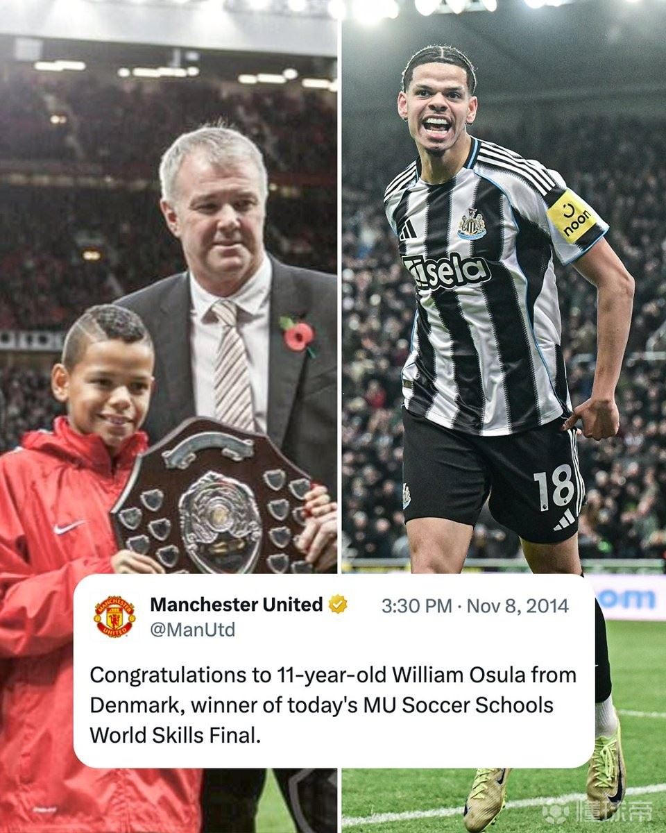 英超第29轮,纽卡斯尔联主场2-1击败曼联,22岁纽卡前锋奥苏拉攻入绝杀进球。赛后,纽卡官方“挖坟”,找出了曼联官方社媒发布的奥苏拉在12年前赢得曼联足球学校技能赛冠军的帖子。
