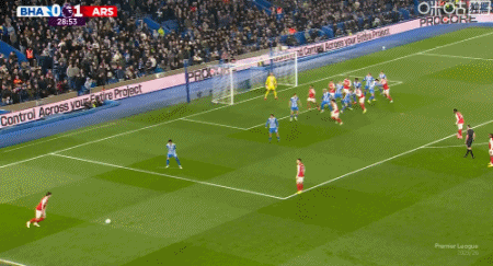 北京时间3月5日英格兰足球顶级联赛 联赛 第29轮,布莱顿主场对阵阿森纳。上半场加布里埃尔门线解围,萨卡兜射破门,赖斯任意球造险。半场战罢,场上比分布莱顿 0-1 阿森纳。