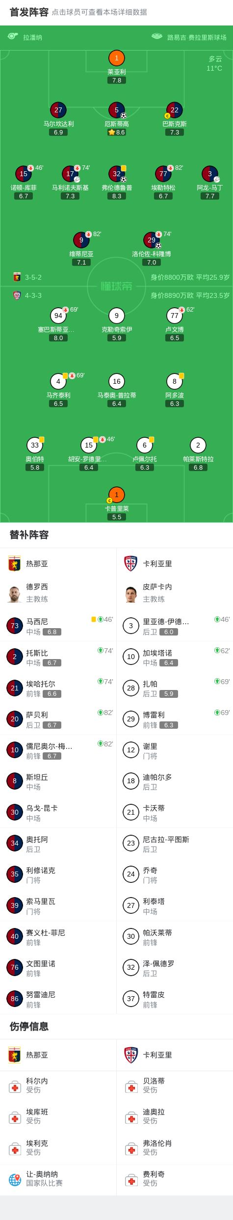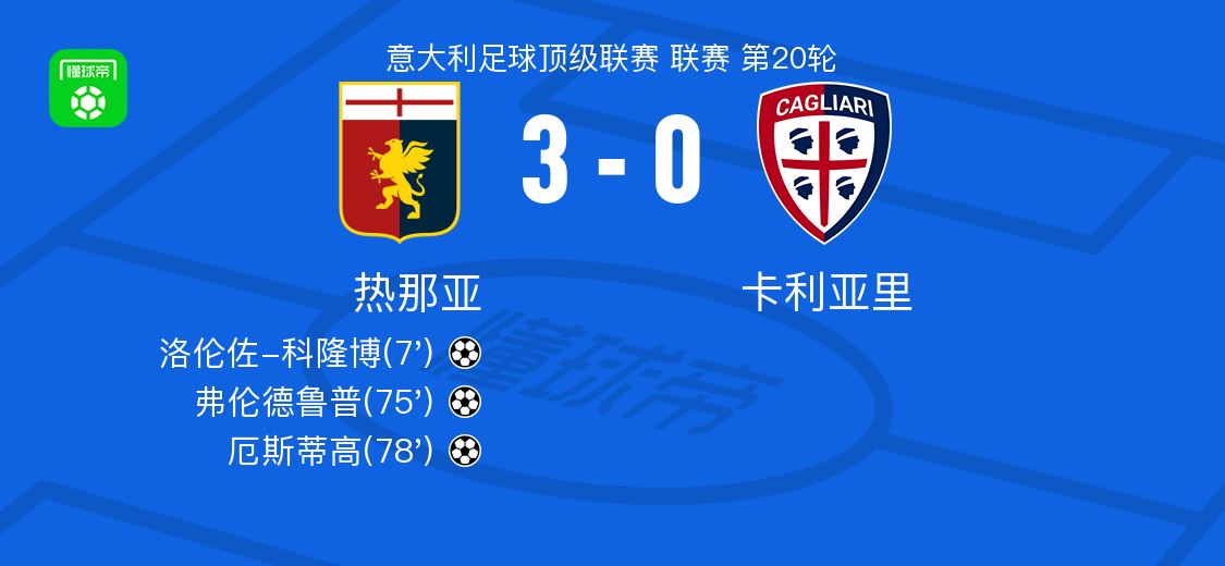北京时间1月13日,意大利足球顶级联赛第20轮,热那亚坐镇主场迎战卡利亚里。比赛开局阶段,马利诺夫斯基送出助攻,洛伦佐-科隆博率先打破僵局。随后,弗伦德鲁普接应进攻再度破门,为球队扩大领先优势。不久之后,阿龙-马丁精准传球找到厄斯蒂高,后者成功将球送入网窝。最终,热那亚以3比0战胜卡利亚里,全取三分。