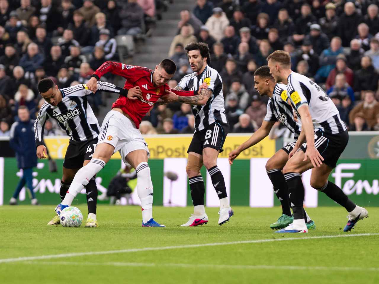 连续两场迎来人数上的优势,这本来是极为有利于曼联的发挥,库尼亚随后在特里皮尔身上更是再次打出明显优势,但被纽卡堵住: