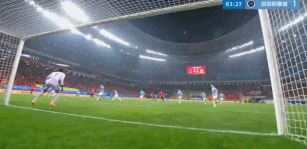 第63分钟,韦林顿分球,王东升右路横传,韦林顿头球冲顶破门,4比1!