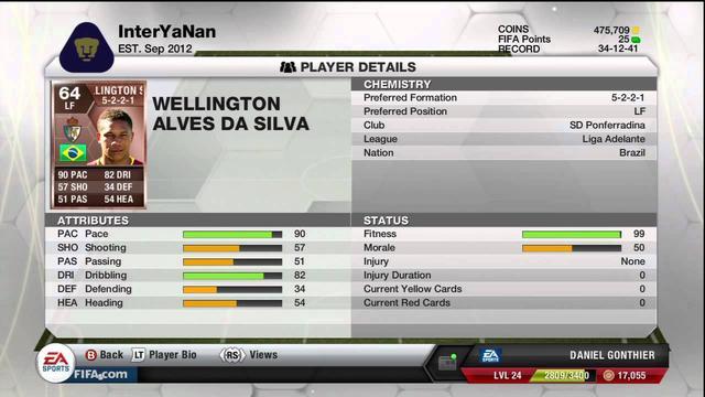 当年在《FIFA 13》的UT模式中,效力于蓬费拉迪纳的韦林顿拥有着一张极其离谱的“银卡” 。在那个人均靠速度吃饭的游戏版本里,他的数据简直是给“速度狗”玩家量身定制的,他的加速(91)、极限速度(90)和敏捷(93)均超过了90的数值。