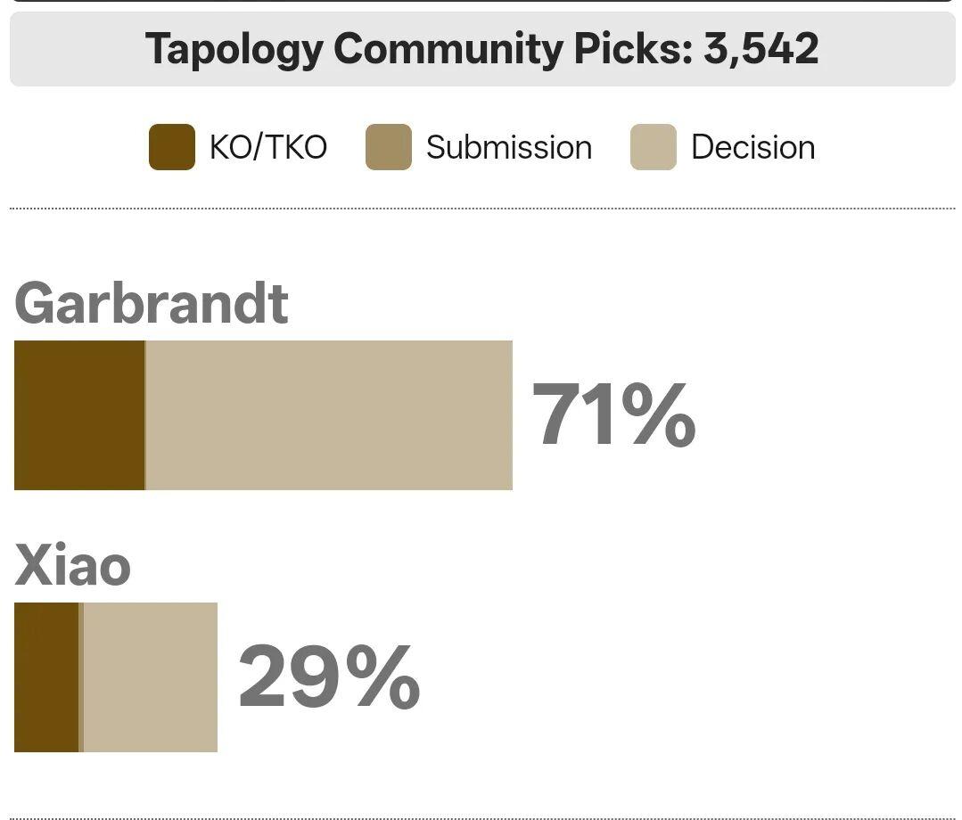 然而,有趣的是,赔率看衰加布兰特,但拳迷们却并不这么想。在TAPOLOGY的投票支持率中,高达71%的人看好加布兰特获胜,只有29%的人认为肖龙能赢。这种“盘口与民心”的背离,恰恰说明了本场比赛的悬念所在。
