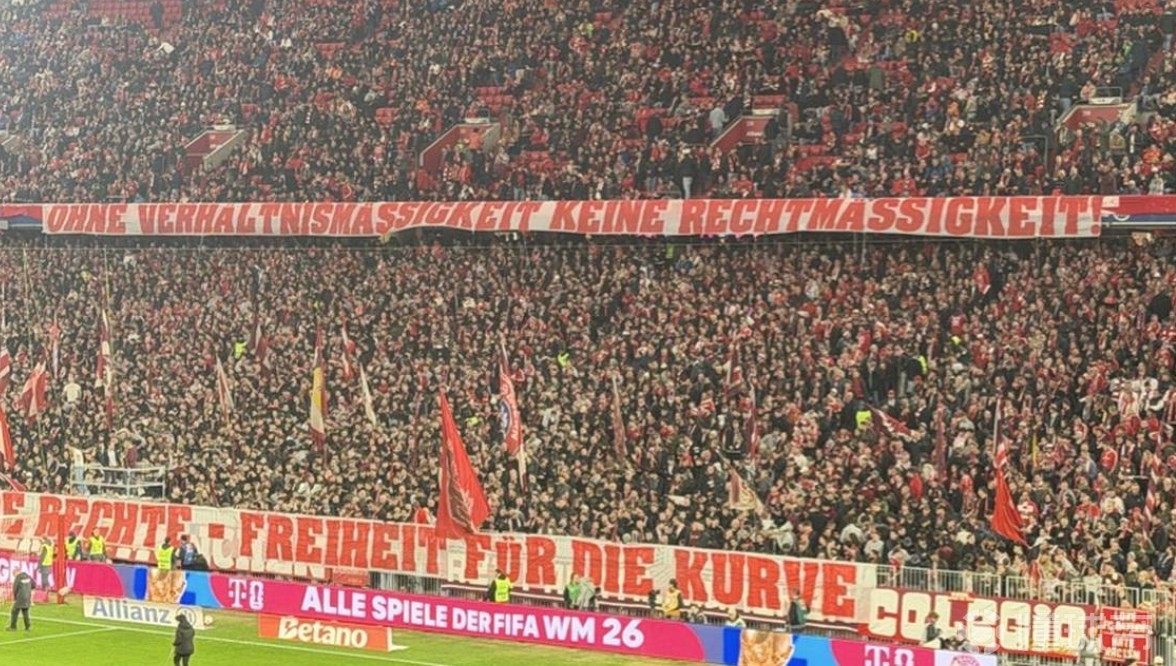 北京时间3月7日,德甲第25轮,拜仁慕尼黑4-1门兴格拉德巴赫。比赛开始前,安联球场南看台出现多条大型横幅,表达球迷对警方执法方式的不满。