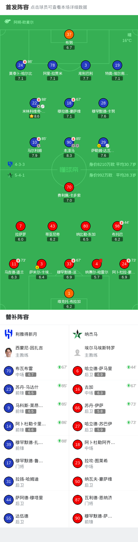 第81分钟,利雅得新月球员米林科维奇-萨维奇助攻本泽马打入一球。