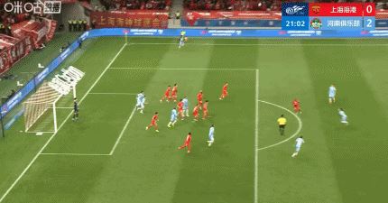 第16分钟,迈达纳角球中头球破门,河南2-0领先海港!