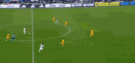 第54分钟,伊尔迪兹禁区右侧底线前倒三角挑传门前,坎比亚索后点包抄头球攻门顶进,尤文1-0领先