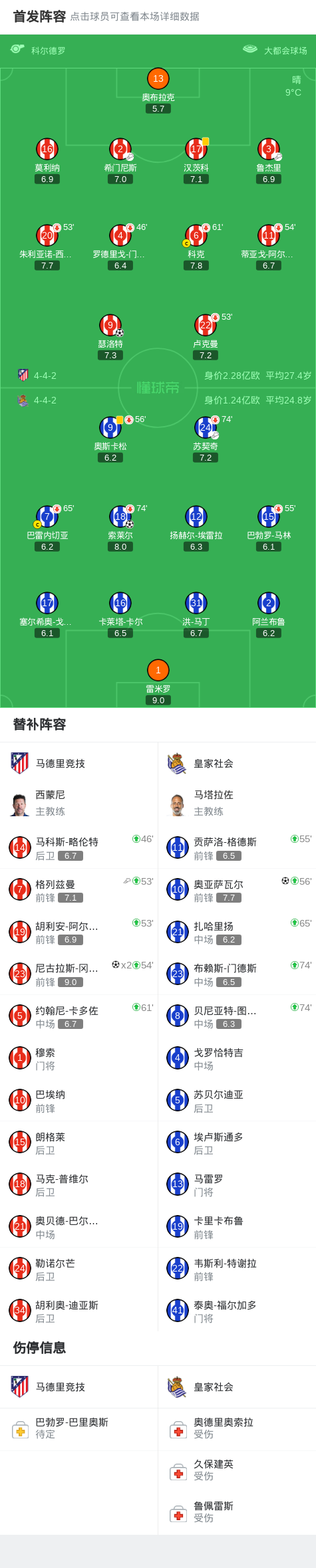 北京时间3月8日1:30,西甲第27轮继续进行,马德里竞技坐镇利雅得航空大都会球场迎战皇家社会,本场主裁判为科尔德罗。上半场,瑟洛特凌空垫射破旧主,索莱尔推射闪电扳平。下半场,格列兹曼脚后跟助攻尼古拉斯-冈萨雷斯破门,奥亚萨瓦尔劲射闪电扳平,紧接着尼古拉斯-冈萨雷斯甩头制胜梅开二度。最终,马竞3-2击败皇家社会。