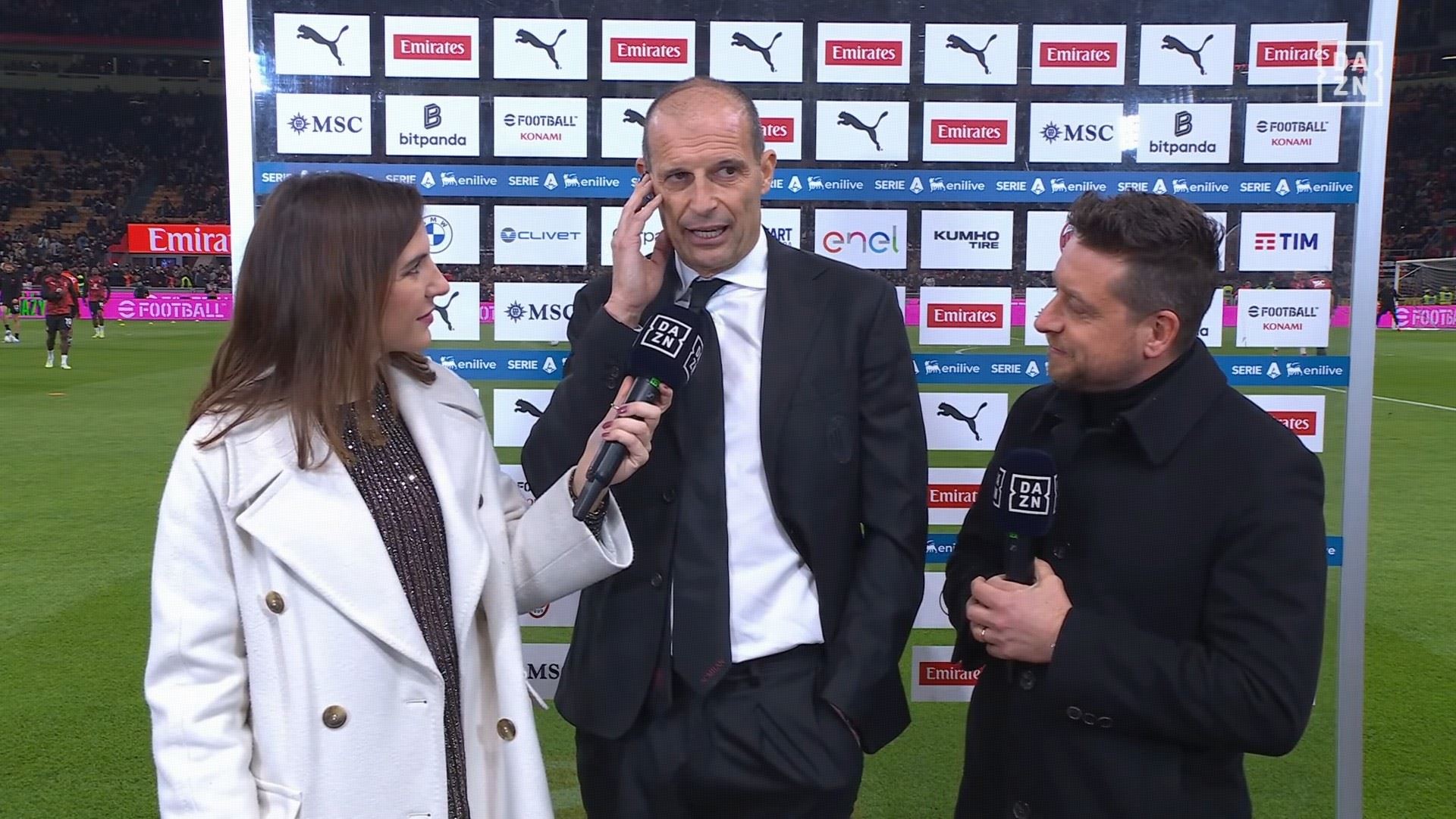米兰在意甲第28轮主场迎战国际米兰的米兰德比即将开始,主教练阿莱格里在赛前接受了DAZN的采访。