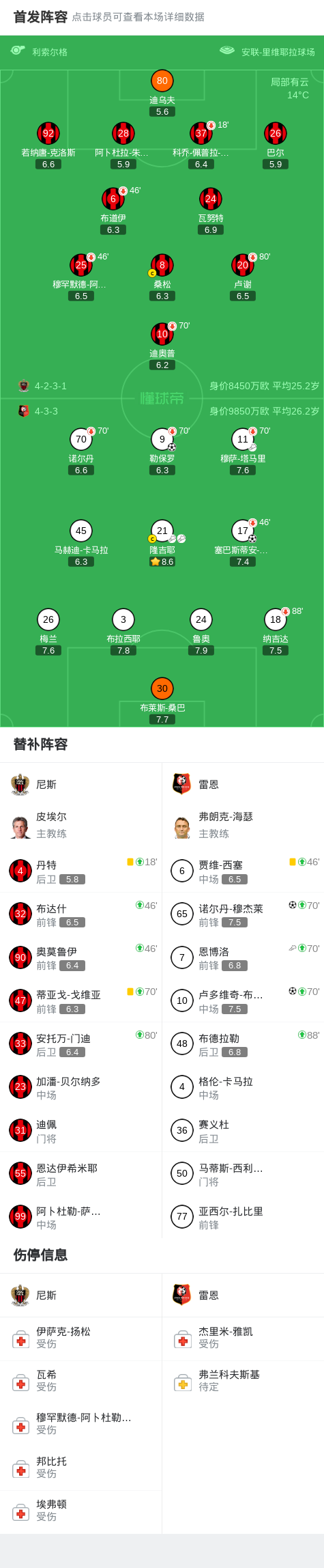 北京时间3月9日法国足球顶级联赛 联赛 第25轮,尼斯主场对阵雷恩。雷恩勒保罗破门,塞巴斯蒂安-希曼斯基破门,卢多维奇-布拉斯破门,诺尔丹-穆杰莱破门。最终比分尼斯 0-4 雷恩。