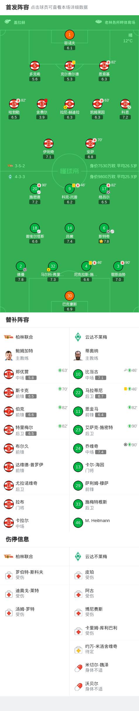 北京时间3月9日德国足球顶级联赛 联赛 第25轮,柏林联合主场对阵云达不莱梅。柏林联合科恩破门。云达不莱梅德曼破门,斯特奇破门,格吕尔破门,乔维奇破门。最终比分柏林联合 1-4 云达不莱梅。