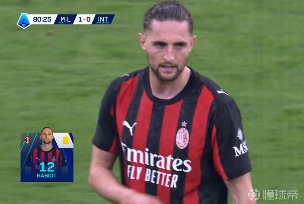 意甲第28轮主场迎战国际米兰的米兰德比中,米兰中场拉比奥在第80分钟因为犯规被主裁判黄牌警告。