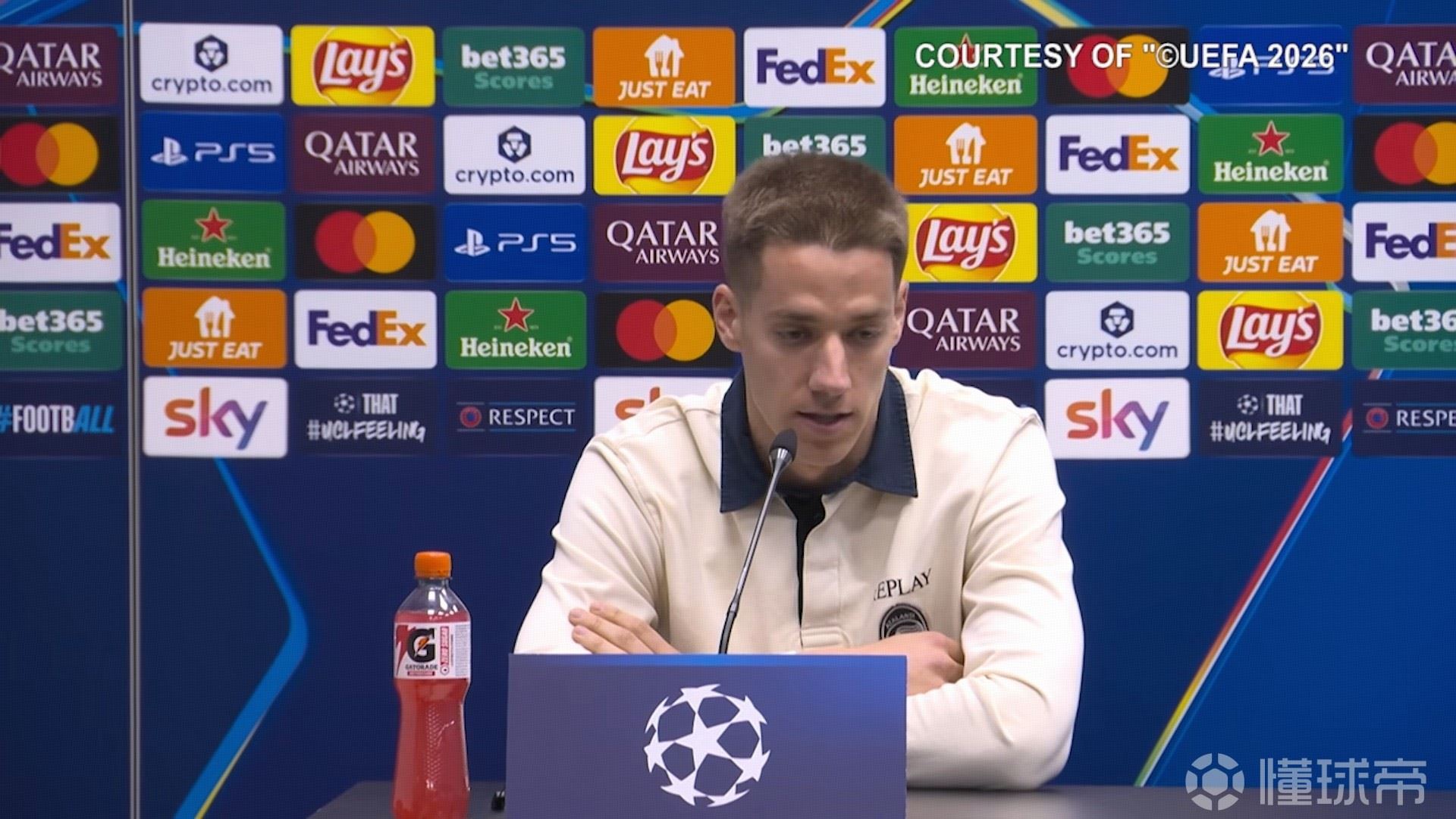 踢欧冠永远是美好的,这是每个孩子开始踢球时的梦想:在最高水平的舞台表达自我,和最强者对抗。这些年来,我确实随队踢了很多对阵豪门的比赛。起初我们可能还没那么接近他们,仅仅是因为能参加比赛就已经感到非常高兴了。但现在我们逐渐达到了可以平起平坐的水平,我们也在对阵类似的球队时取得过成绩,明天我们也打算这样做。