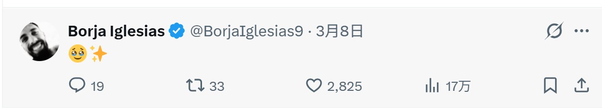 而在麦当娜回应的这条动态下,现塞尔塔球员伊格莱西亚斯也惊喜现身,他回复了一个“感动落泪”的表情。