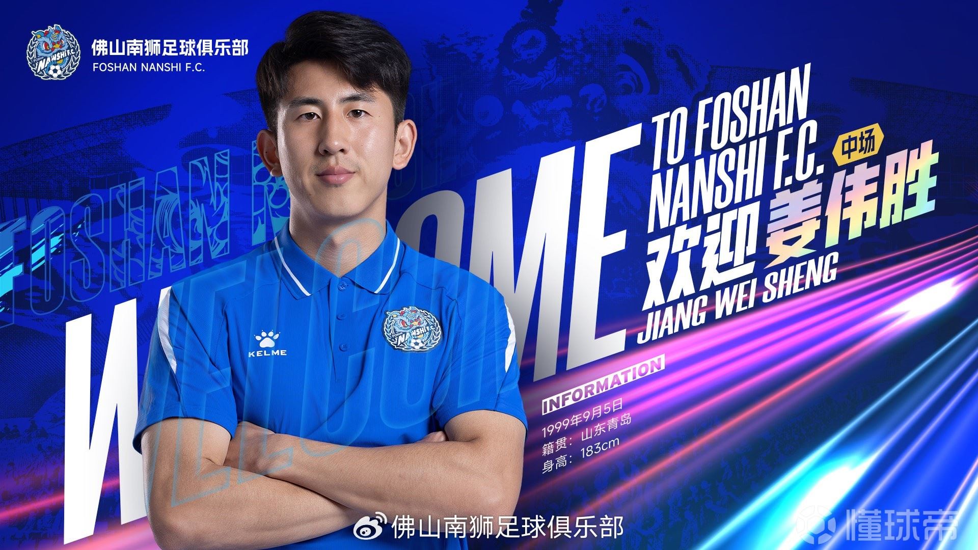 佛山南狮足球俱乐部欢迎姜伟胜的加入! 期待你将欧洲赛场积累的经验带回国内,与球队携手共进,为城市而战!