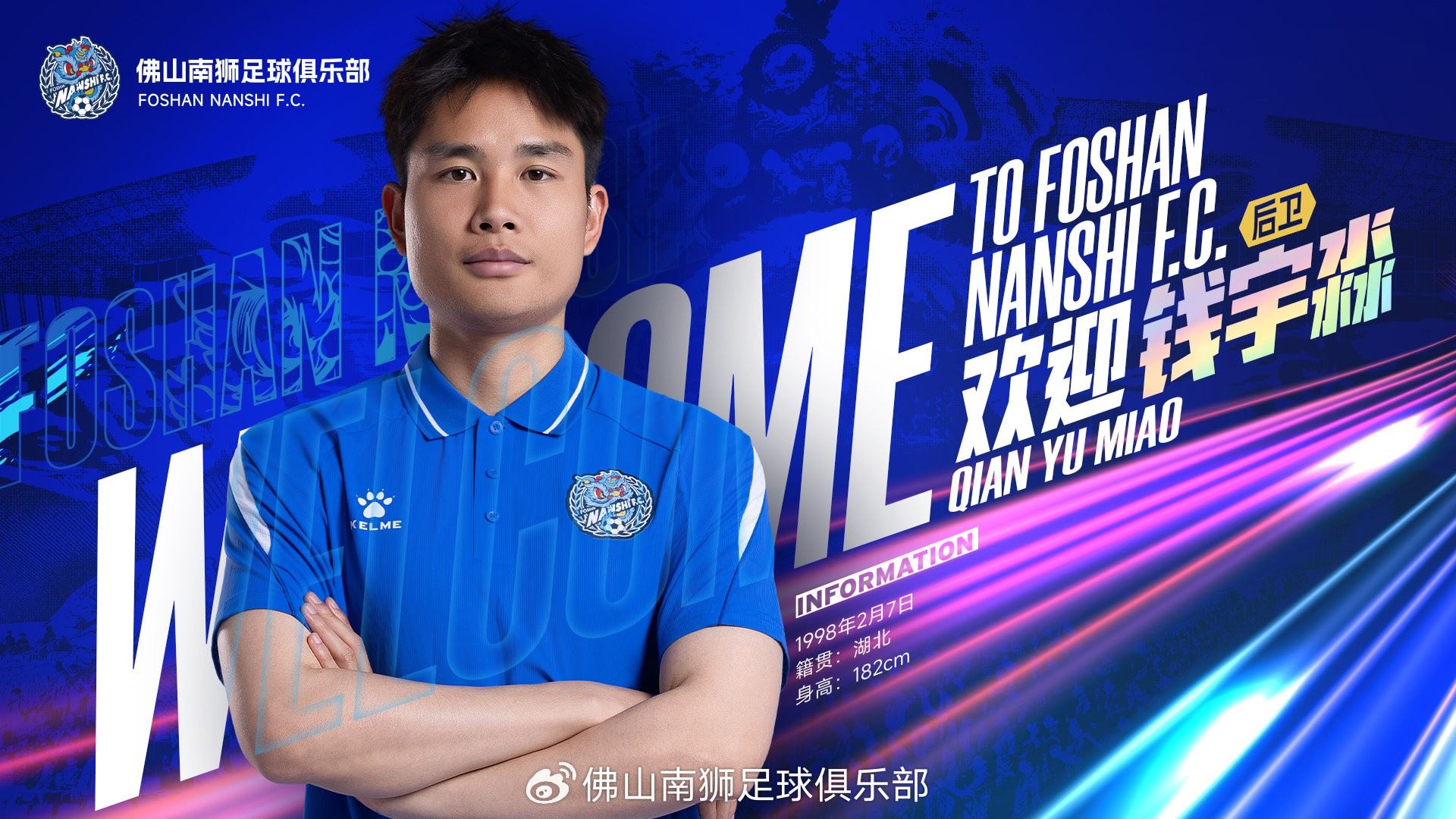 经与球员本人达成一致,即日起,球员钱宇淼正式加盟佛山南狮足球俱乐部。2026赛季,他将身披佛山南狮战袍,为球队镇守边路防线 。